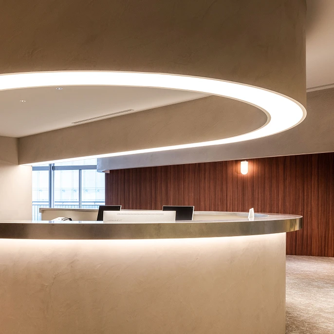 時間帯予約制によりスピーディーな検査(法定コースは30〜60分)を実現。空間デザイナー監修の内装で、リラックスできる快適な環境をご提供しています。また、「要再検査」となった場合も、再検査から治療まで一貫して対応し、より専門的な治療が必要な際は連携病院をご紹介します。
