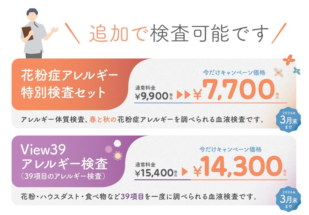 症状が出る前に検査や対策を行うことで、シーズン中の負担を大きく減らすことができます。